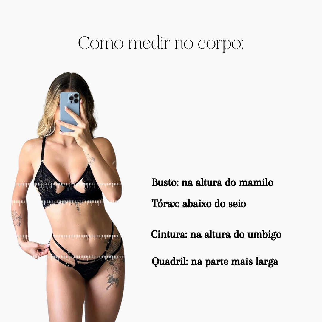 - Robe em tule preto transparente com detalhes em renda, composto por: